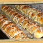 Yağlı kağıt serilmiş fırın tepsisine dikkatlice aldıktan sonra üzerine sıvı yağla karıştırılmış yumurta sarısını sürün. Üzerine haşhaş tohumu, çörek otu ve susam serptikten sonra ruloları 2 parmak kalınlığında dilimlerin (Bu işlemi yaparken hamuru fazla bastırıp rulo şeklini kaybetmeyin). Çörekleri önce 150 derecelik fırında 10 dakika beklettikten sonra fırının ısısını 185 dereceye getirip çöreklerinizi pişirin…
