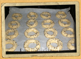 Yumuşamış margarini, ayranı, yumurta sarısını ve sıvı yağı iyice karıştırıp üzerine bir miktar unu, kabartma tozunu, tuzu ve şekeri katıp hamuru yoğurmaya başlayın. Üzerine bir kaç limon damlatıp aldığı kadar un ilavesi ile ele yapışmayan hamur elde edin. Hamurdan cevizden az büyük bezeler koparıp simit şeklini verin. Daha sonra da önce yumurta beyazına daha sonra çörek otu ve susam karışımına bulayıp yağlanmış fırın tepsisine sıralayın.